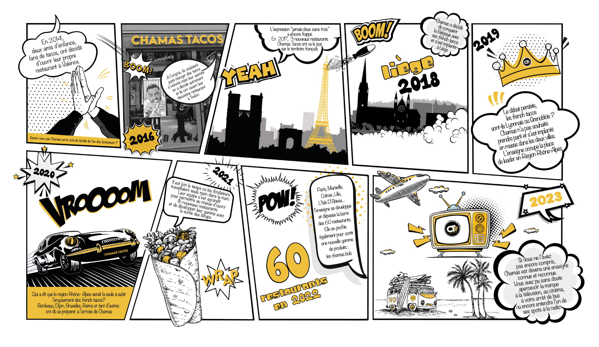 Chamas Tacos®, une enseigne en pleine croissance. L’enseigne compte aujourd’hui plus de 115 restaurants en France et en Belgique, elle a pour objectif d’atteindre la barre des 100 restaurants en 2024.